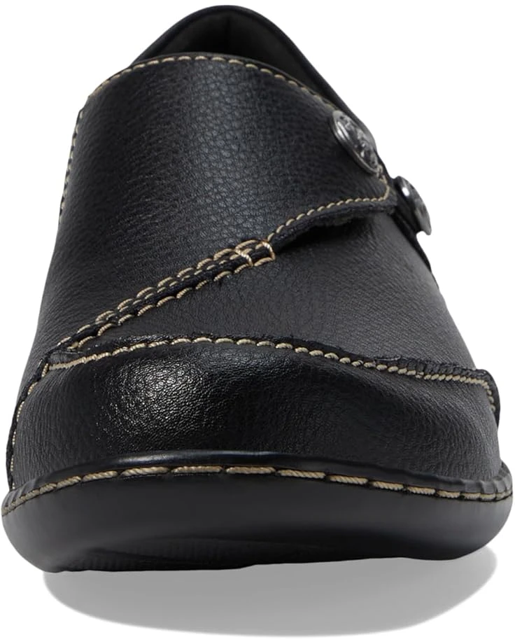 I have been looking for a Clark shoe to replace my UnLoops that I have worn for a long time. This shoe comes very close to that style but is different with the silver buckles. This shoe fits my short wide feet and is quite comfortable. The 7 wide was sized exactly right. I really like the navy color.