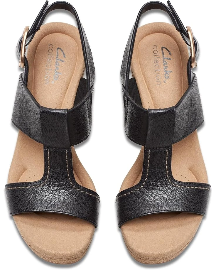 - Complete your elegant look by wearing the Clarks™ Giselle Style footwear that combines style and comfort. The slip-on style sandals have an open round toe, platform block heel, and hook-and-loop closure. The heels have a leather upper, mesh lining, and rubber insole for added comfort and prolonged wear.