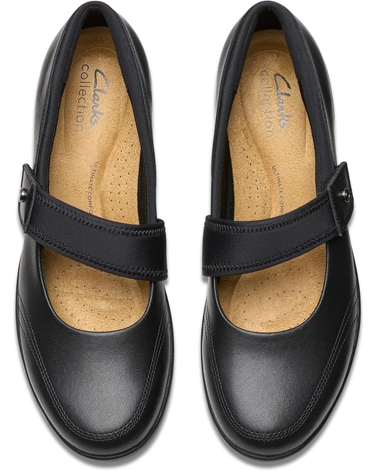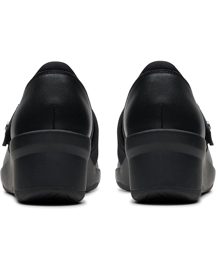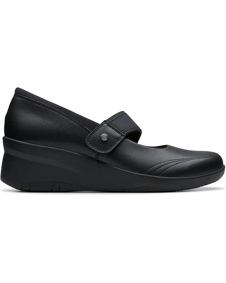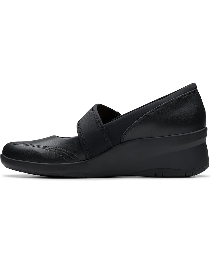 - Rise above in every step wearing the Clarksโข Suttyn May. Crafted from leather upper, mesh lining, and rubber insole, this pair of shoes features round toe, hook-and-loop closure, and wedge heels.